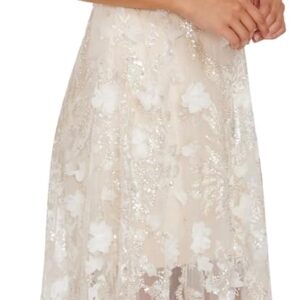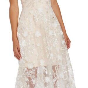 Made from detailed 3D floral fabric, this dress offers rich texture and visual depth.