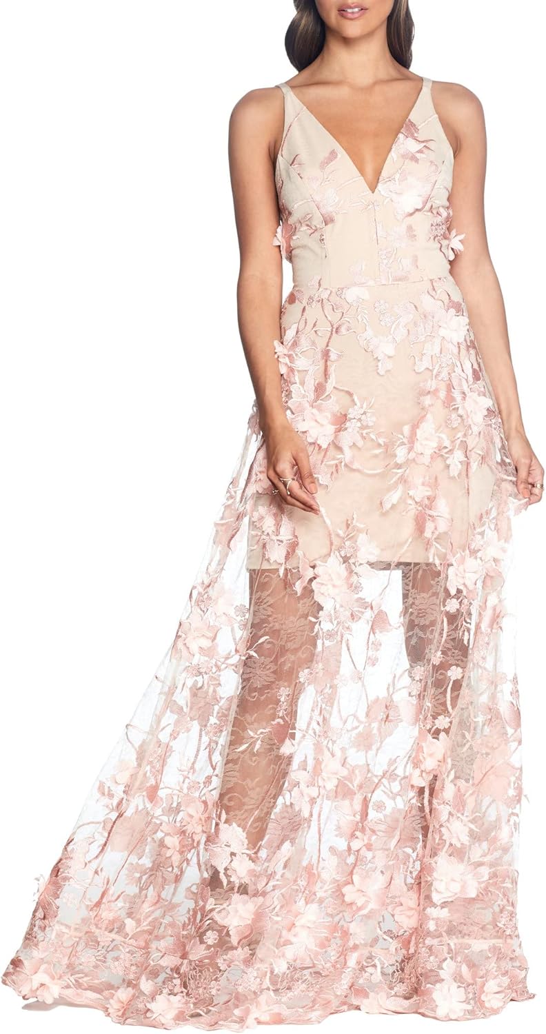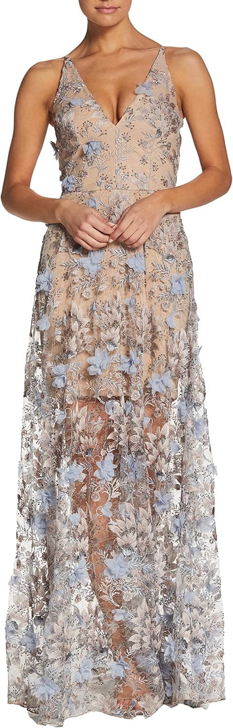 Dress the Population Women’s Sidney Sleeveless Plunge Neckline Fit and Flare Maxi Dress