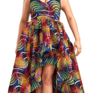 iooiooi African Dresses for Women Party Robe Plus Size Print Dashiki Dinner Dress