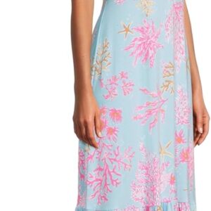 Experience the allure of effortless elegance with the Lilly Pulitzer Women’s Aquinnah Floral Maxi Dress. This exquisite piece beautifully marries timeless sophistication with modern convenience, designed for women who cherish both style and practicality. The dress showcases a flattering fit-and-flare silhouette that gracefully complements the V-neckline and allover floral print, exuding a sense of femininity and charm. Perfectly suited for warm weather occasions, the sleeveless design and pull-on style ensure you stay comfortable and chic, whether you’re at a garden party, a summer wedding, or a casual day out. The fixed bow at the straps adds a delightful detail, while the removable bodice cups and back zipper closure provide a secure fit. The tall ruffle at the hem enhances the dresss flowing movement, making every step a statement. Constructed from a blend of 94% rayon and 6% spandex, this dress offers a soft touch and flexible fit, promising ease of wear and care, as it is machine washable. Embrace the vibrant aesthetic of Lilly Pulitzer with this versatile maxi dress that is designed to captivate and inspire.