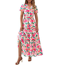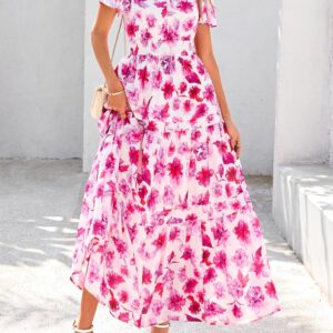 PRETTYGARDEN Short Sleeve V Neck Printed Beach Vacation Dresses for Women