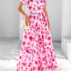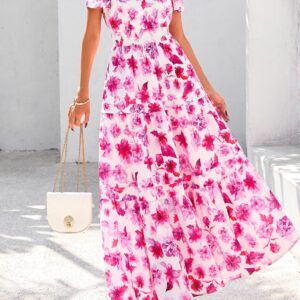 PRETTYGARDEN Summer Maxi Dresses for Women Flowy Bohemian Floral Dress